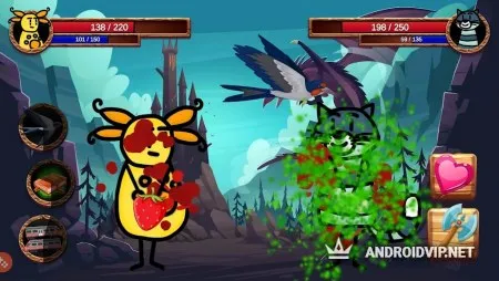 Во время игры вы здесь встретите персонажей из таких произведений, как Гравити Фолз, Лунтик, Простоквашино и других героев, никак не связанных с какими-либо мультифлмами. Сами сражения проходят довольно эпично и зрелищно, благодаря тому, что у каждого персонажа есть свои особенные способности и магическое заклинания. К примеру, вы сможете встретить такие приёмы, как удар в спину мячом, выстрел огненным шаром, бешеные камни и многое другое.