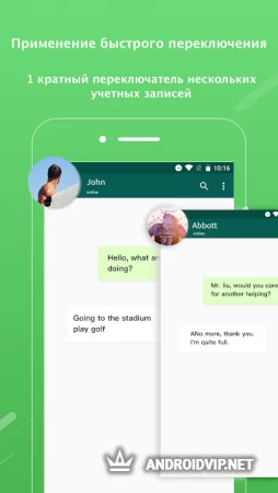 Теперь для того, чтобы использовать два аккаунта в WhatsApp или несколько учётных записей в Instagram или Vk вовсе не нужно постоянно выходить из аккаунта, переключаться между ними или использовать сразу два устройства. Вы можете просто продублировать любимые приложения и наслаждаться использованием двух учётных записей одновременно. Для этого запускайте утилиту, находите нужное приложение и клонируйте его в один клик.