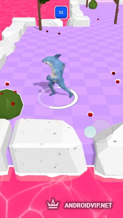 В конце каждой трассы вы встретите соперника, которого нужно будет победить в бою, нажимая для этого как можно чаще на экран. Если же вы не успели набрать массу, то шансов на победу становится меньше. По мере прохождения вам будут открываться новые монстры. А графика в игре достаточно простая, и красочная, с низкополигональным окружением.