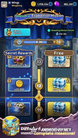 За каждое выигранное сражение вы будете получать сундуки с ценными наградами и денежные средства, которые можно потратить на прокачку героев. Вступайте в гильдию и объединяйтесь вместе с друзьями и игроками со всего мира, чтобы противостоять другим гильдиям. Участвуйте в различных событиях, выполняйте экспедиционные миссии и получайте дополнительные награды.