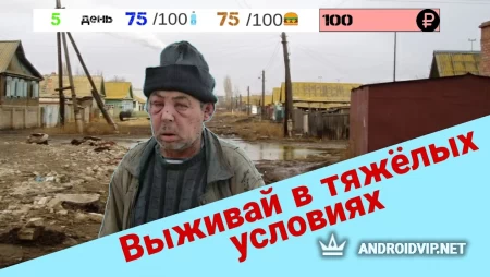 Выживание Бомжа в России - Симулятор жизни - это довольно оригинальный и необычный симулятор, в котором вам предстоит примерить на себя роль бездомного, пытающегося выживать в суровых условиях российских реалий. Проходите различные испытания, зарабатывайте себе на жизнь всеми возможными способами и приведите своего героя к лучшей жизни.