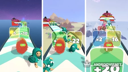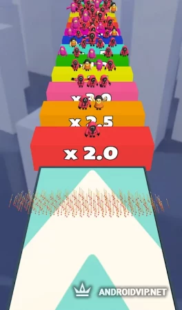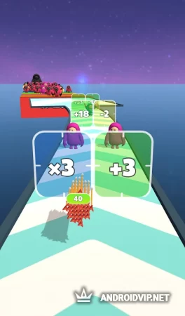 Так же помимо ворот с разнообразными числами в пути вас поджидают встречи с врагами, которые представлены в виде различных героев из популярного сериала "Игра в кальмара". Избегайте встречи с ними, чтобы не растерять свои стрелы на сражения. В конце каждой трассы вас так же будут поджидать противники, которых вы сможете уничтожить при помощи собранных стрел. Чем больше стрел, тем больше врагов вы сможете победить и заработать кругленькую сумму.