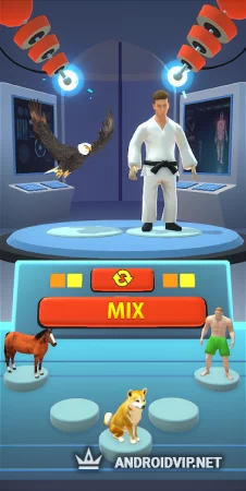 В вашей лаборатории есть возможность проводить довольно интересные опыты, которые ведут к невероятным результатам. Что будет если соединить карате-мастера и, скажем, рыбку? А если взять балерину и птицу? Проверить это можно всего в несколько кликов - нажимайте на персонажа из одной колонки и выбирайте животное из другой, после чего они автоматически трансформируются в новое неожиданное создание.