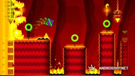 В аркадном раннере Geometry Dash: Meltdown на Андроид игроки будут управлять небольшим цветным кубиком, путешествуя по красочным неоновым локациям. Геймеры должны преодолевать различные преграды, избегать ловушек, острых кольев, ловко укорачиваться от шипов, избегать столкновения с яркими сияющими атмосферами, горящими угольками, убегать от встречающихся на пути опасных монстров. Для прохождения локаций можно задействовать различные игровые механизмы и возможности своего подопечного. Не стоит пропускать золотые ключики, которые дают определенные преимущества, упрощают игровой процесс. Управление квадратиком осуществляется путем простых нажатий на дисплей.
