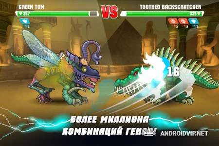 С самого начала игры выберите для себя одного из зверей, с которым уже отправитесь на ваши первые сражения против равносильных оппонентов. По мере прохождения вы сможете постепенно прокачивать его, меняя геном и добавляя части самых различных животных. К примеру, вы сможете создать медведя, с головой акулы, хвостом скорпиона и добавить ко всему крылья. Таким образом у него будут появляться новые способности, которые обязательно помогут в бою.