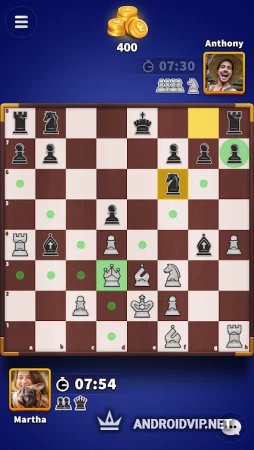 Всего в игре представлено два основных режима - быстрые шахматы или рапид с динамичным игровым процессом и классические шахматы. Играйте 1 на 1 с игроками со всего мира или приглашайте в игру друзей, чтобы сыграть вместе несколько партий. Открывайте новые фигурки и доски, чтобы собрать целую коллекцию и наслаждайтесь любимой настольной игрой.