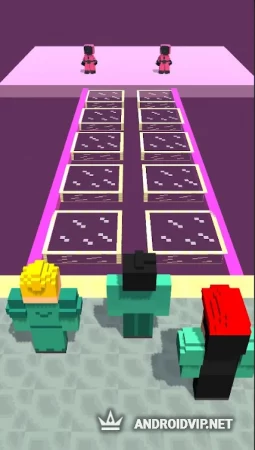 Начните игру на выживание с первого испытания под названием "Красный свет, зеленый свет", где вам нужно будет пройти определённую дистанцию двигаясь только когда горит зелёный свет. Обгоняйте других игроков, пересекайте финишную прямую и переходите к следующей игре. Вырезайте пиксельные фигуры в испытании про сахарные соты, тяните канат в свою сторону, проходите по опасному стеклянному мостику и играйте в мраморные камушки.