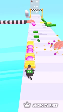 На каждом уровне вы будете проходить трассу, которая полна не только препятствий, но и множества возможностей неплохо подзаработать. Вы будете управлять алчным магнатом, который мечтает стать ещё богаче. Управление здесь стандартное для большинства раннеров, вам лишь нужно нажимать на экран и направлять своего героя в нужную сторону, чтобы собрать все денежки и избежать препятствий.