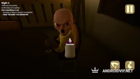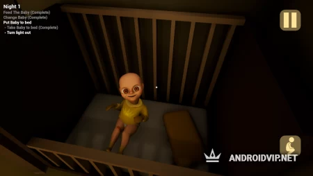Со временем вы понимаете, что ребёнок оказался совсем не простым, а в доме запрятаны души его жертв, поэтому помимо своих основных обязанностей, которые никто пока не отменял, вам необходимо находить в доме различные предметы и освобождать из них души. Управление здесь осуществляется при помощи джойстика и нескольких кнопок с действиями, так же есть возможность настроить чувствительность. Игра понравится любителям ужастиков и порадует геймеров атмосферным геймплеем, интересным сюжетом и неожиданными скримерами.