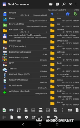 Total Commander - это один из наиболее известных файловых менеджеров, который ранее был доступен только для персональных компьютеров. Теперь же вы сможете запустить его на вашем мобильном устройстве, где есть практически все те же функции, как и на десктопной версии программы. К тому же, она отлично адаптирована для небольших экранов, что позволяет комфортно ей пользоваться на любом устройстве.