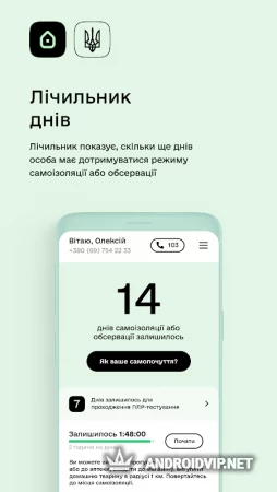 Приложение ведёт подробный учёт всех пользователей, которые в данный момент должны находиться на карантине и соблюдать обязательный режим самоизоляции. В первую очередь данный сервис понадобится тем жителям Украины, которые недавно выезжали заграницу, контактировал с заболевшими COVID-19, имеют симптомы или подтверждённое наличие заболевания и обязаны находиться на самоизоляции.