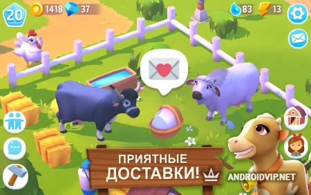 FarmVille 3 - Животные - это новая часть красочного симулятора от Zynga, в которой вы снова можете окунуться в яркий и увлекательный мир Фармвилля и построить свою собственную уникальную ферму. Организуйте на ферме хозяйство, разводите животных, добавляйте различные постройки, расширяйте свои владения и продавайте готовые продукты, которые будут приносить вам доход!