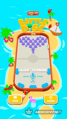 Battle Disc - это минималистичная аркадная игра от SayGames Ltd, которая выполнена в стиле настольного аэрохоккея. Запускайте одну шайбу за другой, чтобы сбить все блоки соперника, пробить его оборону и уничтожить базу. Защищайте от атак противника свои блоки и не дайте им добраться до вашей базы!