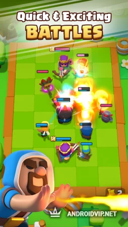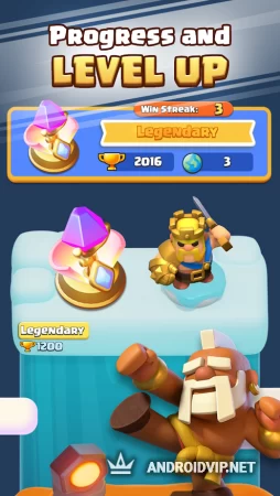 Среди героев вас ждут Король Варваров, Королева Лучниц, Дева Щита и многие другие. Получите удовольствие от игровых режимов один на один или Рамбл против 7 других игроков. Повышайте свой рейтинг в лиге и становитесь топом среди тысяч других!