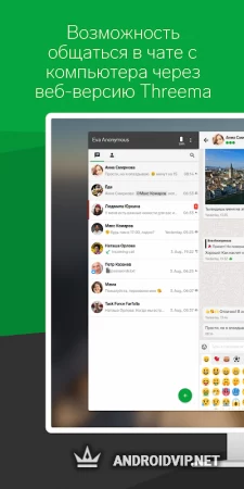 Threema - это один из самых безопасных и хорошо защищённых мессенджеров, который использует сквозную систему шифрования и гарантирует своим пользователям максимальный уровень конфиденциальности. Отправляйте текстовые и голосовые сообщения, делитесь файлами, совершайте аудио и видеозвонки, и будьте спокойны за безопасность своих данных.