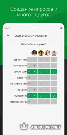 - Создание групп, опросов и совершение звонков;