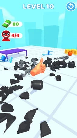 За каждый успешной пройденный уровень вы будете получать денежную награду. Накапливайте свои средства, чтобы приобрести скины для руки или новые ловушки и предметы, которые можно задействовать в борьбе с врагами. По мере прохождения количество противников будет увеличиваться, а вы сможете разблокировать новое оборудование для расправы с ними.