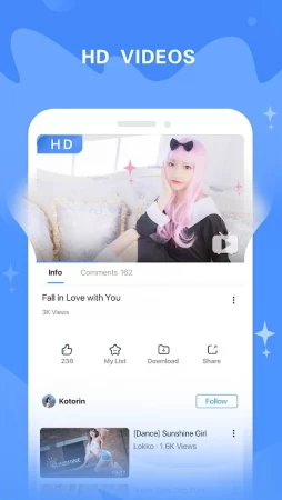 Каждое видео можно смотреть в режиме онлайн, однако при желании каждую можно скачать на ваше устройство, чтобы посмотреть без доступа к интернету. Помимо популярных аниме, в приложении есть немало любительского контента, созданного фанатами сериалов и фильмов. Удобный интерфейс позволит каждому сразу же изучить весь функционал и приступить к просмотру.