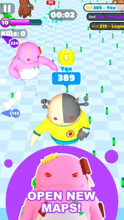 Для прохождения каждого испытания у вас будет ограниченное количество времени, за которое нужно успеть максимально прокачать своего монстра. Таймер находится в верхней части экрана, не забывайте следить за ним, а так же за прогрессом ваших противников. Если при встрече с противником ваш монстр окажется мощнее, то он сможет поглотить его и стать ещё больше. В игре есть множество различных карт с разной местностью, режимов и монстров, которых можно постепенно открывать.