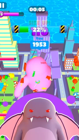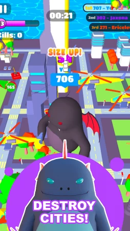 Участвуйте в динамичных соревнованиях управляя милым маленьким монстриком, которого необходимо превратить в настоящего огромного монстра, возвышающегося над целым городом. Для этого нужно устроить полный хаос разрушая всевозможные постройки, здания, деревья, машины и всё, что встретится вам на пути. С каждым новым разрушением ваш монстрик будет расти, становиться всё сильнее и сможет уничтожать здания с одного удара.