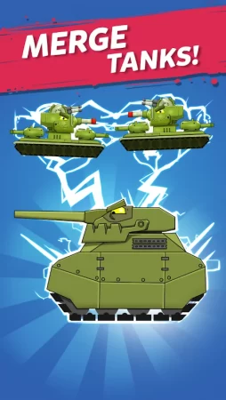 Геймплей здесь довольно простой и не требует особых усилий, однако благодаря этому вы сможете отлично расслабиться и насладиться незамысловатым игровым процессом постепенно открывая новые разнообразные танки. Приобретайте свои первые танки и начинайте их объединять. Соединяя два одинаковых танка вы сможете открыть новый, улучшенный танк. Таким образом, ваша танковая часть будет пополняться новой техникой.