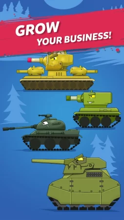 Улучшайте свою технику и делайте её более мощной, откройте эпичный танк Геранд, КВ-44 и другую технику. Чем лучше ваши танки, тем больше дохода они будут приносить. Зарабатывая монетки вы сможете приобретать танки, чтобы пополнить свою коллекцию и найти одинаковые виды техники, которые снова можно комбинировать. Танки будут приносить вам доход даже тогда, когда вы находитесь не в сети.