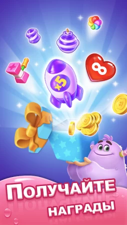 Используйте специальные бустеры, которые можно выбрать перед началом каждого матча. Задействуйте ракеты и взрывайте игровое поле, чтобы собрать как можно больше сладостей и заработать больше игровых очков. Выполняйте ежедневные задания и получайте дополнительные призы. И не забывайте, что у вас есть ограниченное количество ходов для прохождения уровня!