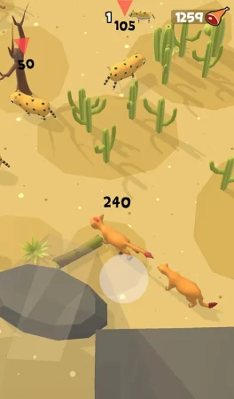 На сафари водятся самые разные животные - слоны, верблюды, антилопы, жирафы, обезьяны и другие звери. Каждый из них обладает своей силой - чем выше число, указанное над животным, тем он сильнее. Выбирая себе жертву старайтесь ориентироваться на эти числа и не нападать на более сильных соперников пока не прокачаете своего льва достаточно для равной схватки.