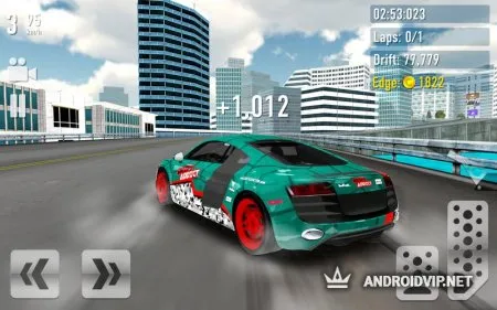 Drift Max City - очередные гонки с акцентом на дрифтинг, однако этот проект можно выделить благодаря качественной графике, сравнимой с компьютерными проектами. Также отметим возможность полетать на гиперкарах, например Bugattu Veyron. В остальном игра предлагает традиционные возможности: покраску автомобиля, нанесение наклеек на кузов, смена дисков. Покатайтесь на пяти красивых локациях, на которых предусмотрена смена дня и ночи.