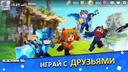 Blockman GO - Adventures - это отличная песочница в стиле Minecraft с пиксельной графикой, где вас ожидают десятки мини-игр и игровых режимов. Кастомизируйте своего героя и выбирайте любую игру, в которой вы сможете посоревноваться с другими игроками или объединиться с друзьями, чтобы покрафтить и устроить своё приключение!