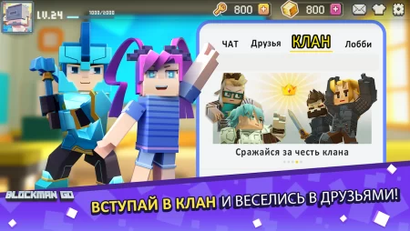 Здесь собрано огромное количество мини-игр и различных режимов, среди которых геймеры обязательно найдут что-то подходящее. Играйте в Bed Wars, Egg Wars, Sky Block и другие мини-игры, в которых вы сможете выполнять различные миссии, получать награды, а главное - играть вместе с друзьями. Вступайте в свой клан и сражайтесь в команде, взаимодействуйте с другими игроками и веселитесь вместе.