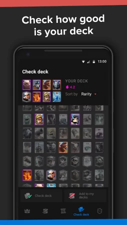 Deck Shop for Clash Royale - это удобное и достаточно полезное приложение, которое обязательно пригодиться любителям игры Clash Royale. Данная программа позволит синхронизировать ваш официальный аккаунт, чтобы отслеживать различные игровые данные, собирать колоды и улучшить вашу эффективность игры!