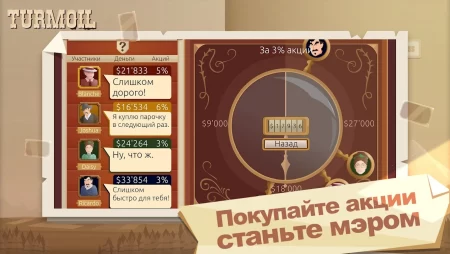 Turmoil - это необычный казуальный симулятор от голландских разработчиков Gamious, выпущенный LTGAMES GLOBAL, в котором вам предстоит взять на себя роль нефтедобытчика в самый разгар нефтяной лихорадки. Приобретайте на городском аукционе землю, начинайте поиски нефти, заработайте целое состояние и проберитесь на вершину власти!
