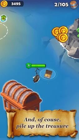 Периодически возвращайтесь на бухту, обменивайте добычу на золотые монеты, ремонтируйте корабль и улучшайте его качества, где можно увеличивать наносимый урон, количество пушек, запас здоровья, размеры и скорость плавания. Всё это в разы увеличит ваше преимущество над противниками и позволит добывать ещё больше сокровищ!