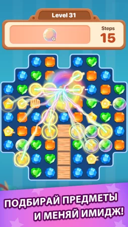 Головоломки "три в ряд" имеют классическую, известную многим механику, где вам нужно искать на игровом поле элементы одинакового цвета и собирать из них цепочки. Используйте различные бустеры и усилители, которые помогут быстрее зачистить игровое поле и выполнить задание, чтобы повысить свой уровень, получить игровую валюту и отправиться наряжать героинь и следить за развитием сюжета.