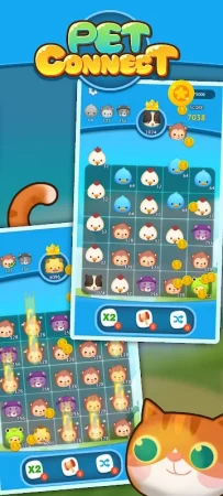 Pet Connect - cute pets match - это милая казуальная головоломка с механикой слияния и красивой мультяшной графикой. Соединяйте питомцев одинакового уровня, чтобы открыть новых животных более высокого уровня. Очищайте игровое поле, используйте разнообразные бонусы и наслаждайтесь расслабляющим игровым процессом!