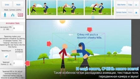 Все анимации в приложении построены на модельках сикфигур, где каждый элемент можно анимировать при помощи несложных операций. В вашем распоряжении будет огромное количество персонажей, а также получится скачать ещё более 30 000 готовых фигур с веб сайта, которых становится с каждым разом всё больше. При желании вы конечно же сможете создать уникального героя при помощи простого редактора. Помимо героев есть немало предметов для взаимодействия и создания заднего фона.