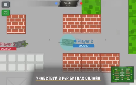 Все бои проходят в режиме реального времени с настоящими игроками, что делает сражения довольно интересными и разнообразными. У вас будет ограниченное количество времени, за которым можно следить по таймеру, расположенному в верхней части экрана. Уничтожайте вражеские танки, побеждайте в битвах и зарабатывайте золото, которое вам ещё понадобятся для апгрейда своей коллекции танков.