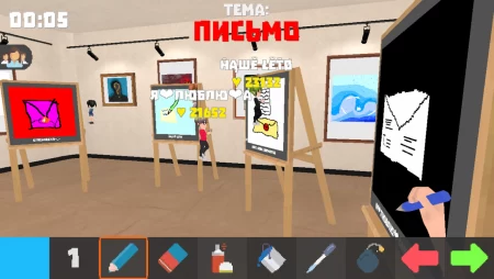 Если вы любите рисовать, хотите поделиться своим творчеством и попробовать свои силы в художественных соревнованиях, то эта игра вас точно заинтересует. В режиме свободного рисования вы можете просто воплощать на виртуальном листке бумаги свои идеи, а вот в режиме битвы художников уже можно попытать удачу и посоревноваться за лучшую картину на заданную тему. Все игроки получают слово, на основе которого нужно нарисовать картину, после чего каждый из художников оценивает работы и побеждает та, что наберёт больше голосов.