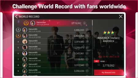 В игре постоянно проводятся различные соревнования и еженедельные лиги, где можно сразиться с другими игроками и получить ценные награды за призовые места. Так же вы можете выполнять миссии для получения дополнительных наград за свои достижения. Каждая песня имеет свой рекорд, который обновляется ежемесячно. Помимо этого есть общая таблице лидеров, куда попадают самые сильные игроки, поставившие мировой рекорд.