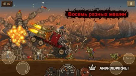И это далеко не все. С каждым уровнем количество зомби увеличивается, появляются новые типы ходящих мертвецов. Поэтому всю заработанную внутриигровую валюту за уничтожение врагов придется потратить на прокачку автомобиля до максимального уровня, превратив его в настоящую машину смерти. Чтобы уничтожать врагов в клочья, потребуются улучшения автомобиля в виде пропеллера для ускорения, модернизированная коробка передач, улучшенный двигатель, острые зубья спереди капота, оборудование для поражения зомби на дальних дистанциях. Задействовать можно различные виды вооружения. Насобирав достаточно кредитов, можно купить гоночный болид, военный фургон, автобус или многотонный грузовик внушительных размеров. Всего в игре доступно восемь видов различных транспортных средств.