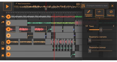 Перед началом работы, выберите записи которые вы хотите смонтировать вместе, и расположите их на одной из нескольких дорожке. Каждую звуковую дорожку вы сможете обрезать и передвигать свободно, а сделать это достаточно легко, даже на сенсорном экране, благодаря удобному интерфейсу. Полученный результат можно экспортировать, задав файлу любое название, после чего можно будет поделиться им с друзьями или выложить в социальных сетях.