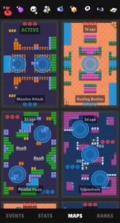 В первую очередь вы сможете ознакомиться с описанием игровых локаций, где есть множество деталей и подсказок, помогающие лучше ориентироваться в пространстве и эффективнее использовать окружающую среду. Также, получится подробно отслеживать весь список полученных вами трофеев. Каждый бравл имеет свою личную статистику, где информация собрана из проведённых боёв всеми игроками, что поможет вам определиться с выбором.