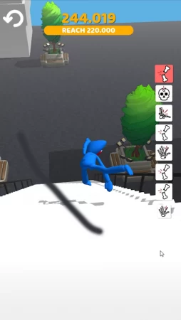 После того как вы прыгните, изменить направление стикмена будет невозможно - просто наблюдайте за его движениями и накопленными очками. В игре реализована ragdoll-физика, что делает игровой процесс ещё интереснее, ведь стикмены двигаются и ведут себя очень непредсказуемо при столкновении с различными предметами. Зарабатывайте очки за падения и приобретайте новые скины, чтобы управлять разными известными героями вроде Хаги Ваги.