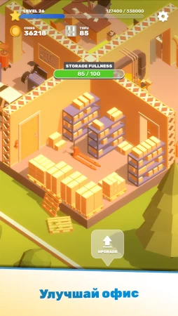 За выполнение каждого заказа вы будете получать денежные вознаграждения, которые можно потратить на развитие вашего бизнеса. В вашем здании есть несколько помещений - офис, производство тофу, склад и гараж. Обустраивайте офис приобретая новые предметы, улучшайте производство тофу увеличивая свои обороты и приобретайте новые машины, чтобы доставлять заказы быстрее и удобнее.