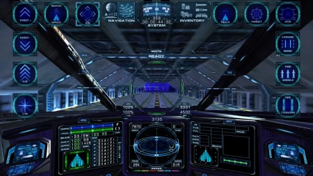 Как только зайдёте в симулятор, вы сразу же сможете взлететь на вашем корабле, где обнаружите детальную панель управления, с множество функций. Благодаря возможности менять расположение камеры вы сможете наблюдать за вашим кораблём от третьего лица, или же почувствовать себя внутри кабины пилота. Конечно же по мере игры вы сможете улучшать ваш корабль, менять его внешность, добывать различные ресурсы и материалы для этого.