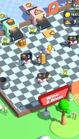 Геймплей здесь предельной простой и освоить его можно с первых минут - от вас требуется последовательно выполнять различные действия, чтобы постепенно продвигаться и развивать ресторан. Начните с малого, ваш ресторан только открылся и нужно принять поставку и обслужить первых клиентов. Забирайте с кухни готовые заказы, разносите их по столикам и собирайте оплату и чаевые накапливая денежные средства для дальнейших улучшений.