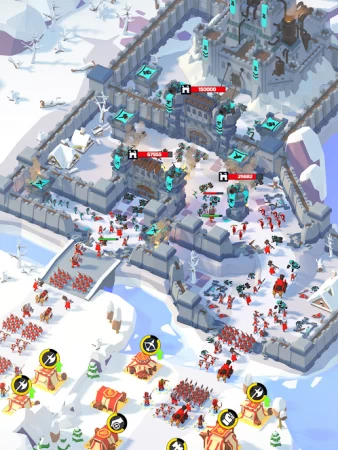 Idle Siege: War simulator game - это красочная и довольно увлекательная стратегия, со сражениями в рольном времени. В данной игре вам предстоит побывать в роли командира довольно большой и мощной армии, которую вам понадобится повести на штурм самых различных крепостей. Проявите ваши способности стратега и захватывайте новые территории!
