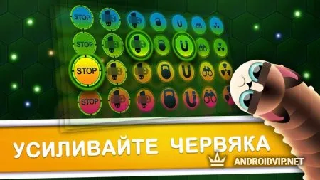 По мере прохождения вы будете набирать очки, которые помогут вам в будущем. Например, когда вы наберёте 100 очков, откроется возможность мгновенной остановки. 500 очков подарят вам навык прохождения сквозь остальных червяков, однако данная способность ограничена по времени.