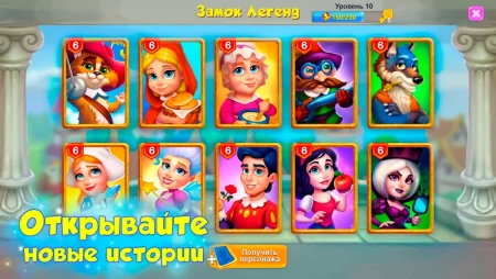 Собирайте карточки со сказочными героями и откройте всех жителей королевской фермы. Стройте для своих персонажей домики, выполняйте заказы и различные квесты, за которые можно получить ценные призы. Взаимодействуйте с другими игроками, общайтесь и соревнуйтесь. Вступайте в гильдии, участвуйте в разных тематических событиях и наслаждайтесь беззаботным времяпровождением.